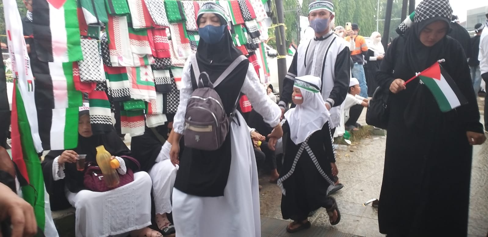 “Selain tidak ada yang menjaga anak-anak, kami pun ingin mengenalkan anak-anak agar mereka semangat juga membela saudara muslim di Palestina dan mencintai mereka,” jelas Fatiah peserta aksi yang membawa seorang balita dan anak usia 6 tahun.