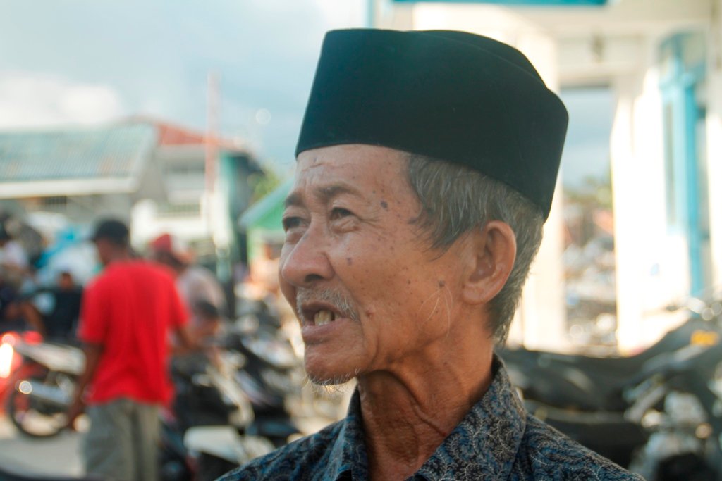 “Saya bawa lari istri dan cucu saya, saya terus lari jauh-jauh dari pantai, kira-kira 5 km,” tutur Pak Tanwir mengisahkan.