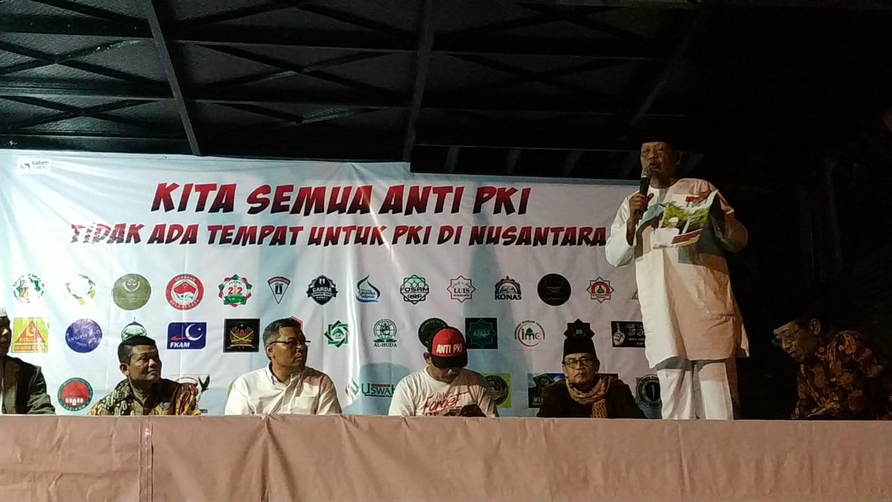 “Kekejaman PKI itu bukan hanya tahun 65, saya dulu itu tahun 48, saya satu keluarga, bapak ibu yang putranya 18, saya anak no 14, waktu itu saya dan keluarga mau dibunuh, Kemudian ternyata dari Madiun sudah dikejar di Siliwangi,” katanya mengawali kisahnya.