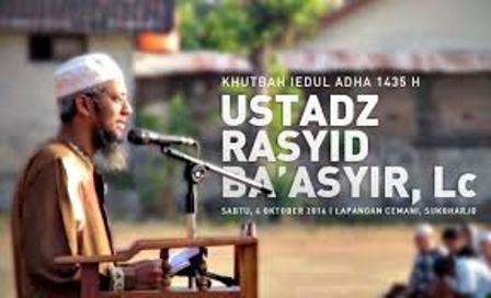 JURNALISLAM.COM – Dalam khutbah Idul Adha 1435 H yang dilaksanakan di Lapangan Cemani, Sukoharjo pada hari Sabtu (4/10/2014) kemarin, Ustadz Rasyid Ba’asyir selaku khotib menyampaikan materi tentang hikmah dan isyarat yang terkandung dalam rangkaian ibadah haji. Beliau menjelaskan bahwa ada 3 hal yang menjadi isyarat dan pelajaran-pelajaran penting dari disyariatkannya ibadah haji.