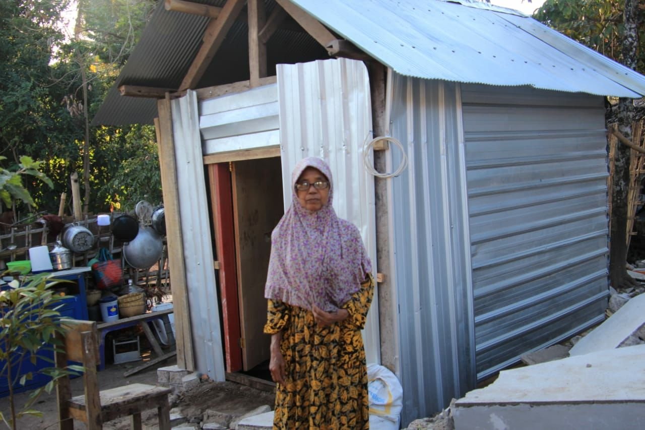 Tim relawan dari Jamaah Ansharusy Syariah berinisiatif untuk membuatkan hunian sementara bagi Bu Kesmin. Rumah yang dibangun dari kayu dan baja ringan itu bersifat sementara hanya dapat digunakan untuk beristirahat.
